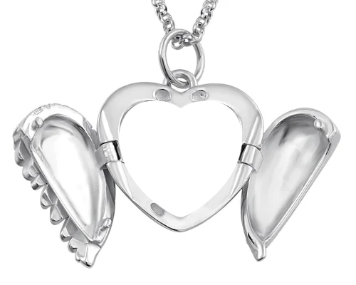 Collana con foto di cuori di ali di angelo incisibili in argento