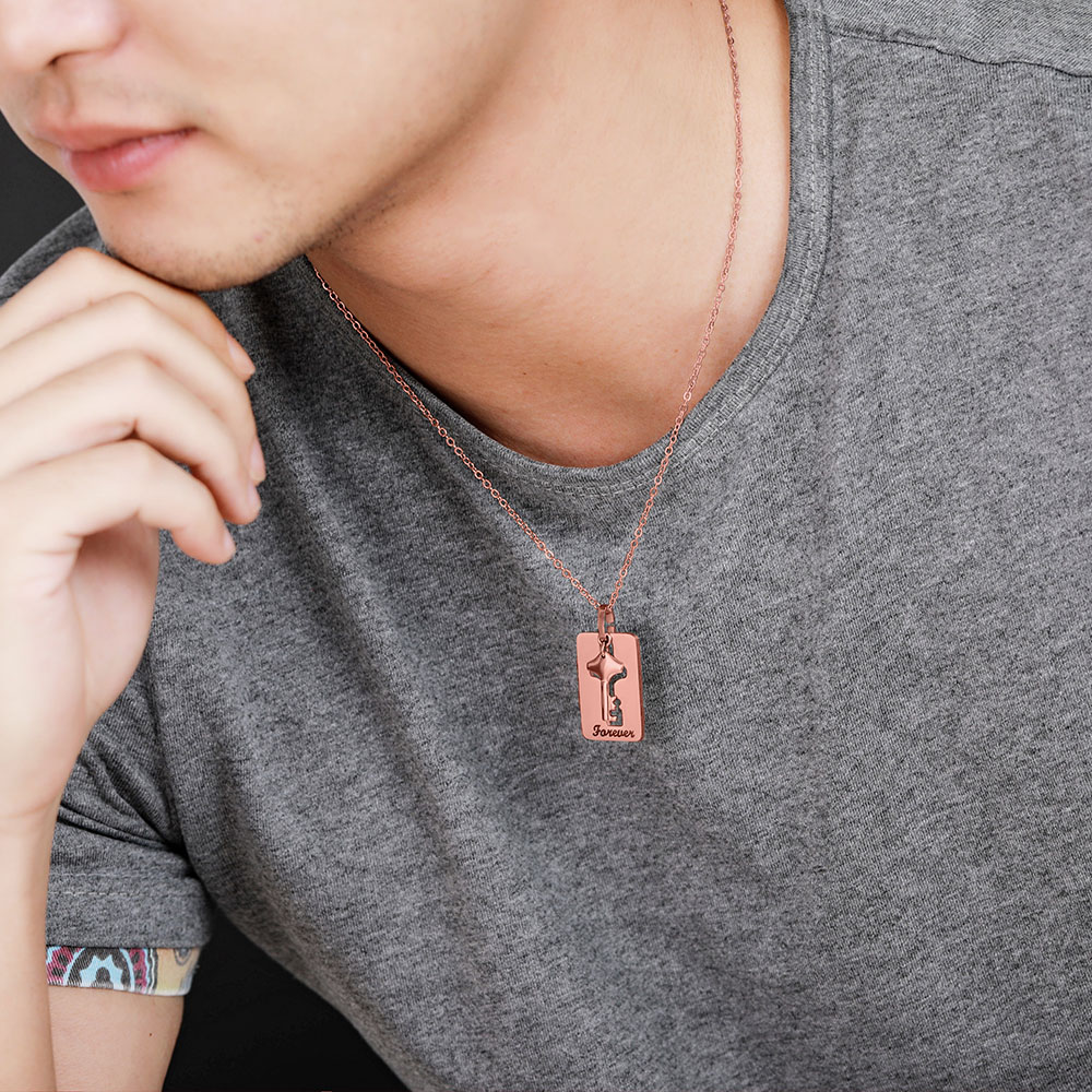 Bracciale e collana chiave personalizzati per coppia in oro roso